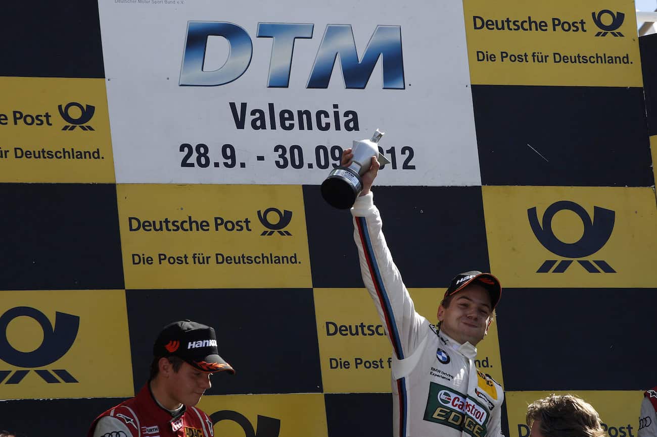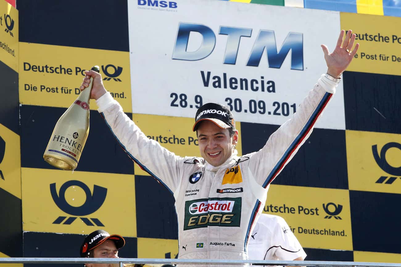 Valencia (ES), 30th September 2012. Brazilian debut in Valencia (ES): BMW Team RBM’s Augusto Farfus has won his first DTM race at the “Circuit de la Comunitat”. The 29-year-old, at the wheel of the Castrol EDGE BMW M3 DTM, crossed the finish line 8.406 seconds ahead of Adrien Tambay (FR, Audi) to become the first Brazilian in the history of the DTM to celebrate on the top step of the podium. He had previously claimed his first pole position in the series on Saturday.